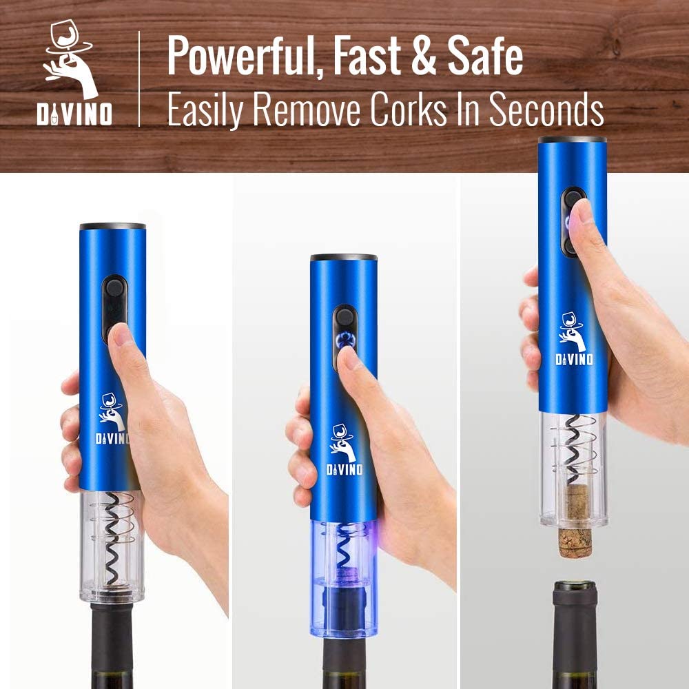 - 🔋 FAST & MADE TO LAST – Our aluminum electrical cordless wine opener has not only a sleek look & feel but is also more durable than a plastic automatic bottle opener which breaks easily. Besides, our battery operated wine opener has a food-grade sharp corkscrew to open bottles without shredding corks at an optimal speed of 6 seconds, thus prolonging its lifetime.