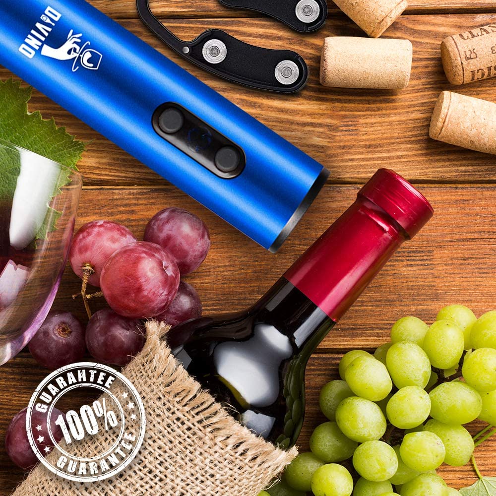 Rechargeable Electric Wine Opener BLUE Kit – Cordless Electric Wine Bottle Opener with Foil Cutter and USB-C cable